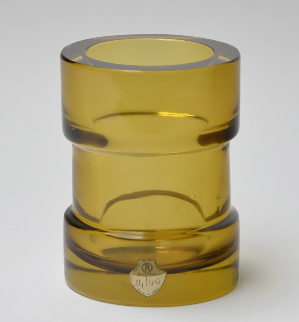 Seguso, Murano - Vaso in vetro pagliesco. Reca etichetta con numero di serie "14140" (h cm 13) Bibliografia : CFR. M. Heiermans, Seguso vetri d'arte. Glass objects from Murano. Arnoldsche, Stuttgart 2014, p. 176
