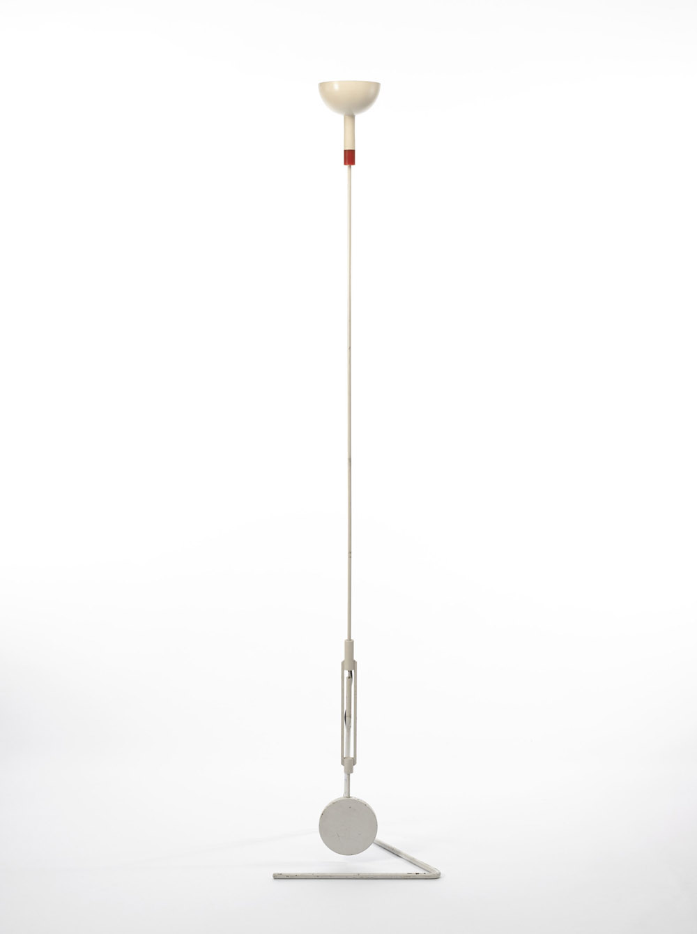 Elio Martinelli (1921 - 2004) - Lampada da terra a pendolo, in metallo laccato bianco e plastica rossa. Produzione Martinelli Luce, Italia anni 70. (h cm 210) (lievi difetti)
