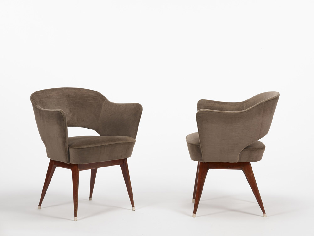 Silvio Cavatorta - Coppia di poltroncine ricoperte in velluto beige,...