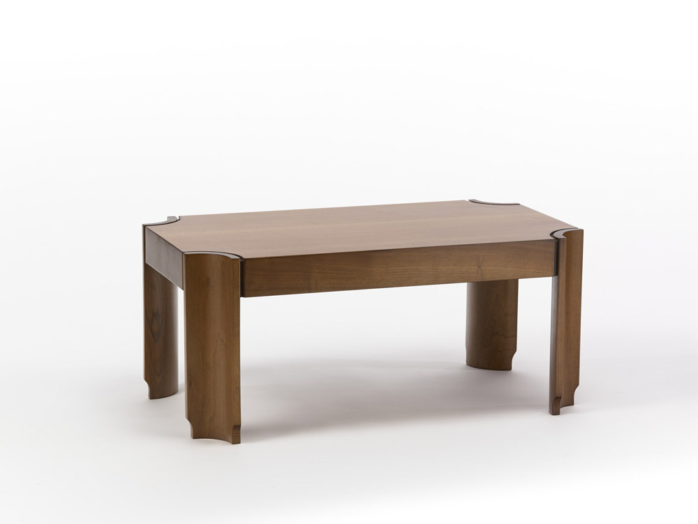 Tavolino da salotto impiallacciato in noce con piano rettangolare e gambe concave. Esecuzione Marelli & Colico, Cantù, anni 60 (cm 90x39x51)