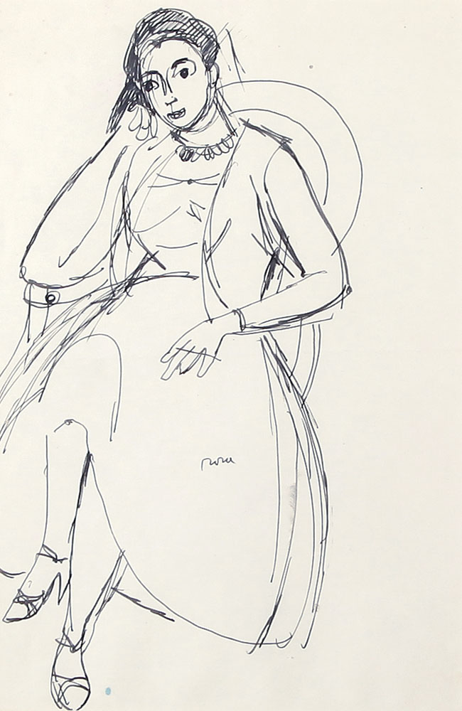 ENRICO PAULUCCI Genova 03/10/1901 - Torino 22/08/1999 Ragazza seduta, (1940) inchiostro su carta cm. 31x20, opera non firmata, opera registrata presso l'Archivio delle Opere di Enrico Paulucci come da dichiarazione dell'aprile 2011 su foto.