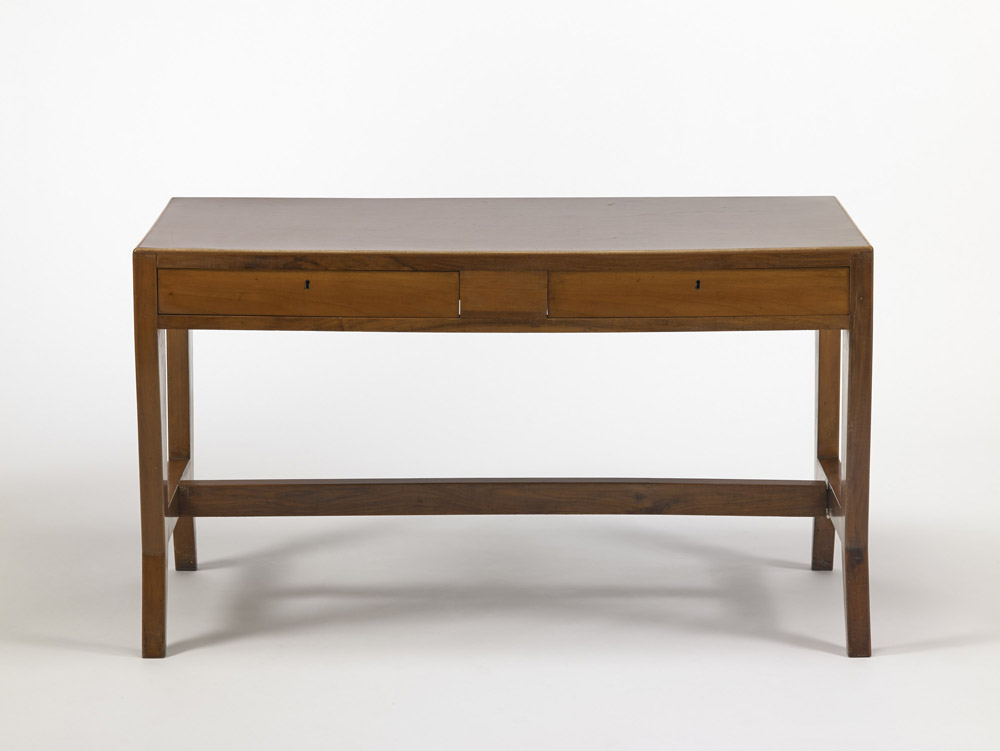Gio Ponti (Milano 1891 - 1979) - Scrivania in legno di noce a due cassetti con piano in formica. Produzione italiana, anni 50. Questa serie di arredi fu disegnata per la Banca Nazionale del Lavoro e per altri uffici italiani, e risulta prodotta da Schirolli (Mantova) e ISA (Bergamo) (cm 140x80x70) (lievi difetti)