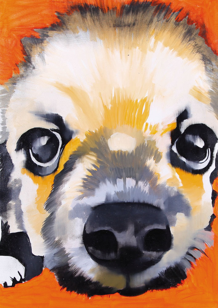 CLEONICE GIOIA Colleferro (Roma) 12/01/1976 Dog, 2011 tecnica mista su tela cm. 70x50, firma, titolo e anno al retro, dichiarazione d'autenticità dell'artista su foto, opera senza cornice.