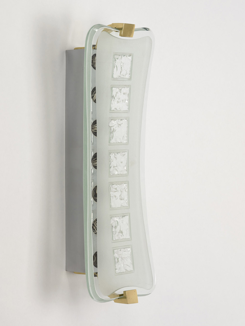 Max Ingrand (1908 - 1969) - Lampada da parete modello "1568". Produzione Fontana Arte 1956 ca. Cristallo sagomato molato e scalpellato, ottone zapponato, metallo laccato e cromato. (h cm 60) (restauri) Bibliografia: "Domus" n 314, 1956; I quaderni Fontana Arte, n. 6, 1964, p. 90; F. Deboni, Fontana Arte. Gio Ponti, Pietro Chiesa, Max Ingrand, Allemandi, 2012, tav. 340. N.B. a richiesta sono disponibili le fotografie della lampada prima dell’intervento di restauro.