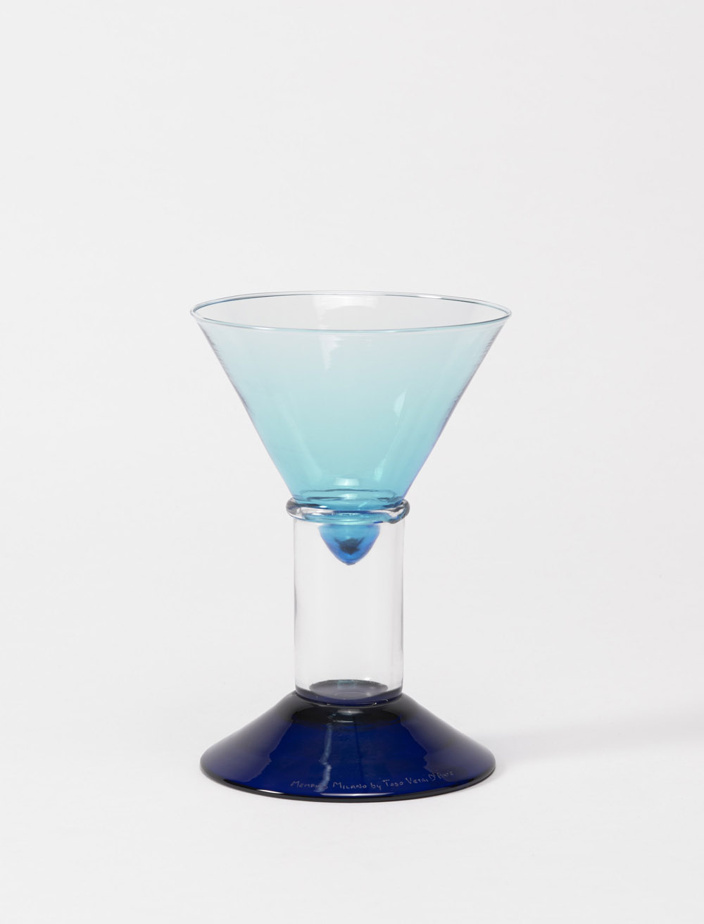 Marco Zanini (1954) - Coppa "Cassiopea", manifattura Toso vetri d'arte per Memphis Milano, 1982. Vetro soffiato trasparente incolore, blu e azzurro. Firmato a punta alla base. (h cm 18,5)