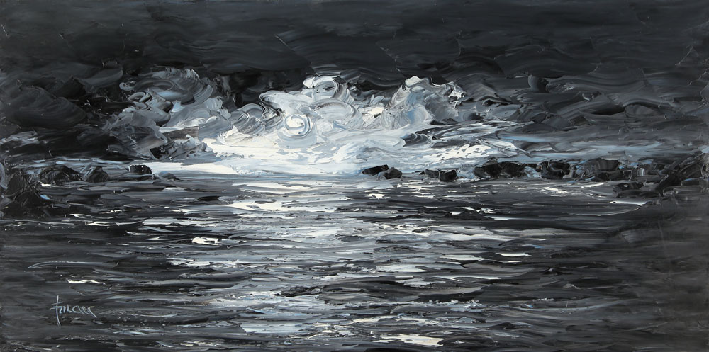 MARIO FALCHI Porto Maurizio 1950 Notturno, 2011 olio su tela cm. 50x100, firma in basso a sinistra, titolo, firma e anno al retro, dichiarazione d'autenticità dell'artista su foto.