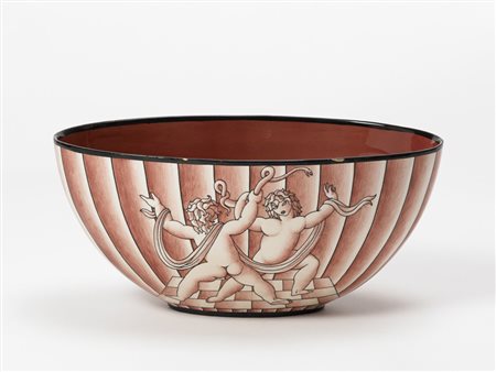 Ercole Barovier (1889 - 1974) - Coppa della serie "Parabolici", manifattura Barovier & Toso, Murano 1958 circa. Vetro di forte spessore con murrine di colore marrone trasparente, opalescente e ametista. Firmato a punta sotto la base, (d cm 20,5) Bibliografia per esemplari simili: Art of the Barovier glassmakers in Murano 1866-1972, a cura di M. Barovier, Arsenale, Venezia 1997, p. 152