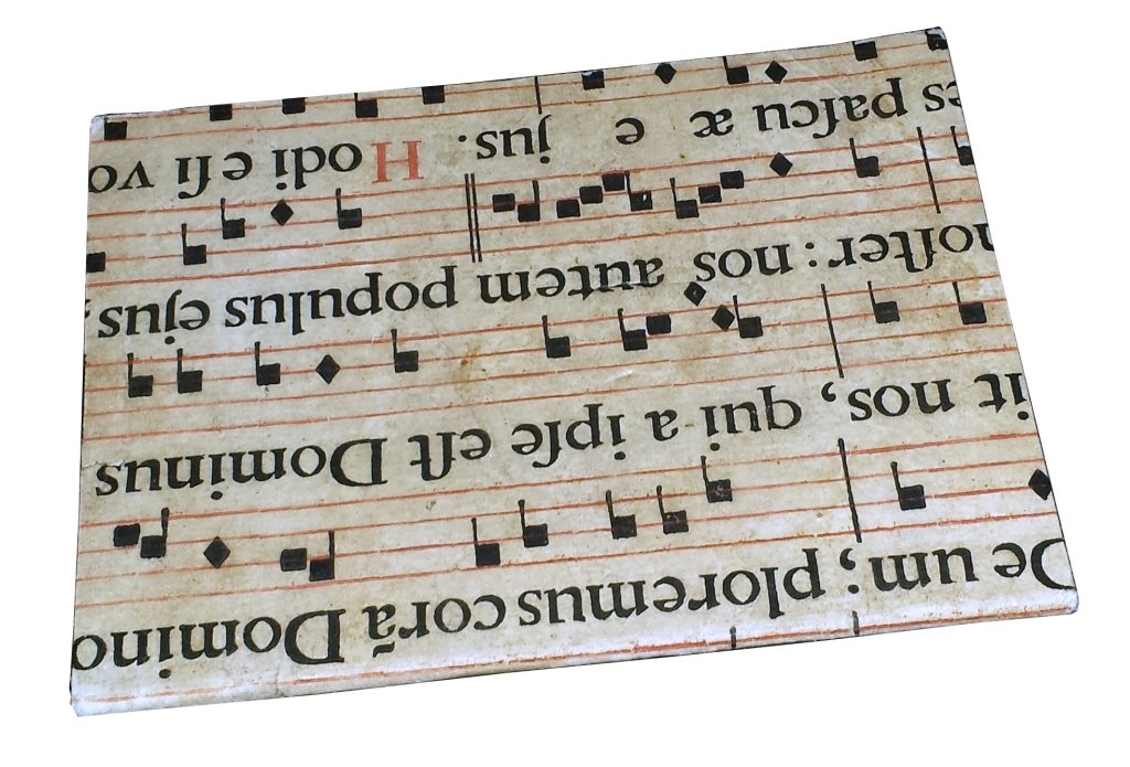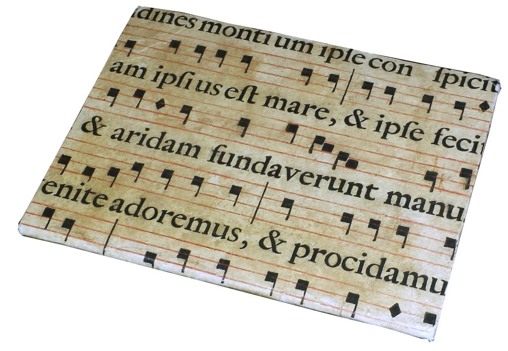 4to, stiff paperboards from a 18th century musical sheet in red and black, ff. [9].Text in latin, gothic type.