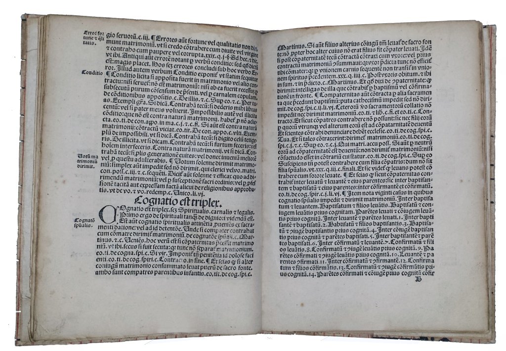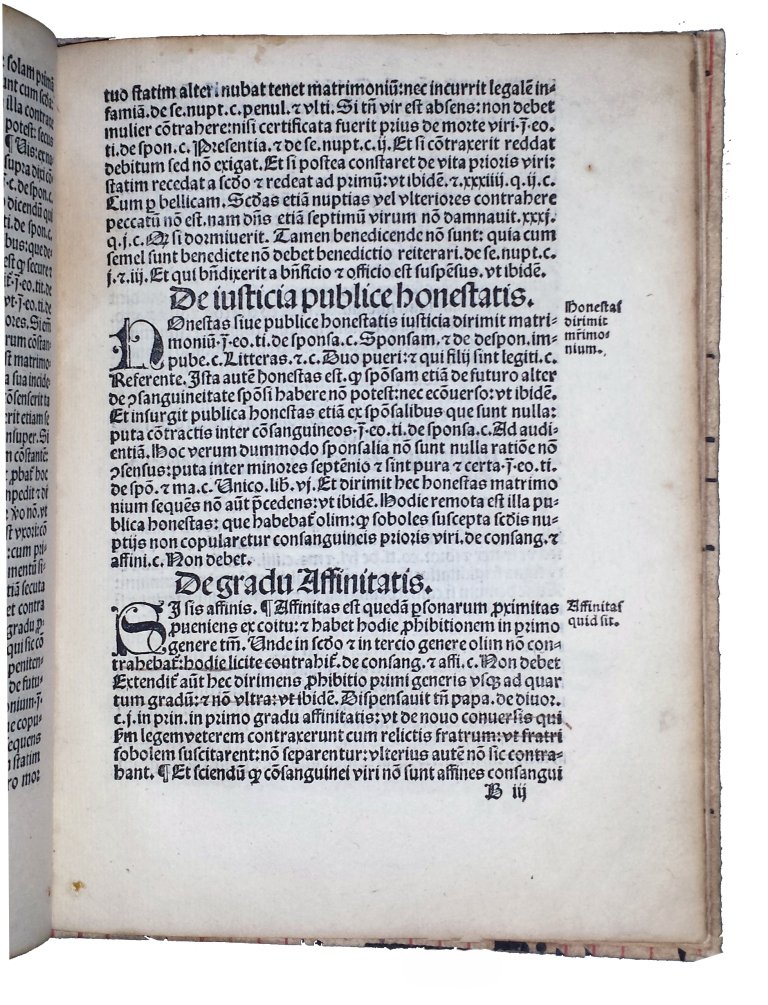 The work is a digest of the Medieval laws on marriage as described in the fourth book of Gregory IX’s Decretals, a book entirely devoted to marriage law: the first printed edition of this work was published (twice) in Rome: about 1473 by Adam Rot (GW 1742) and about 1473-74 by Johannes Gensberg (GW 1743). The Summa had nineteen editions in the 15th century (all extremely rare).