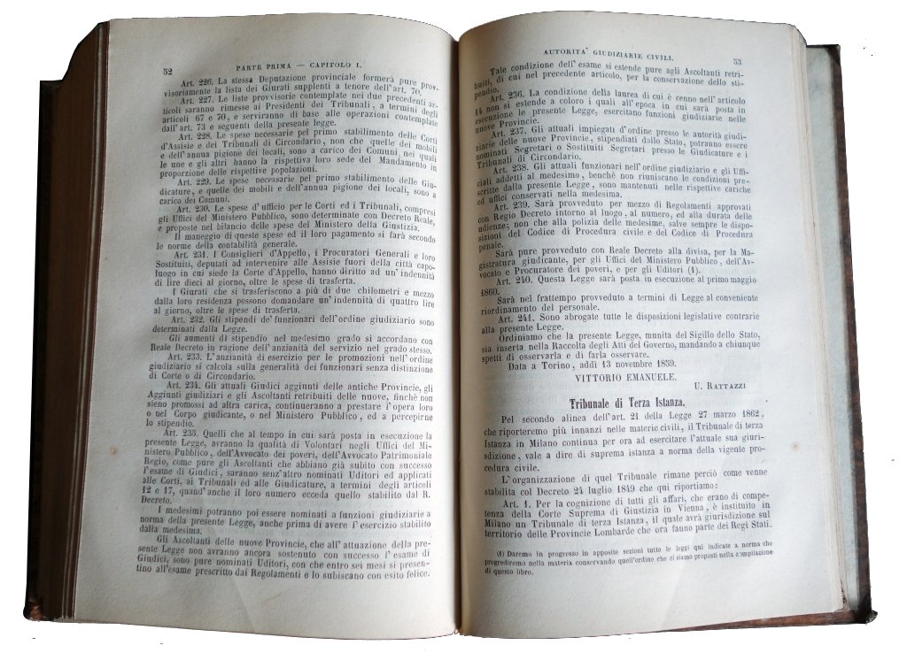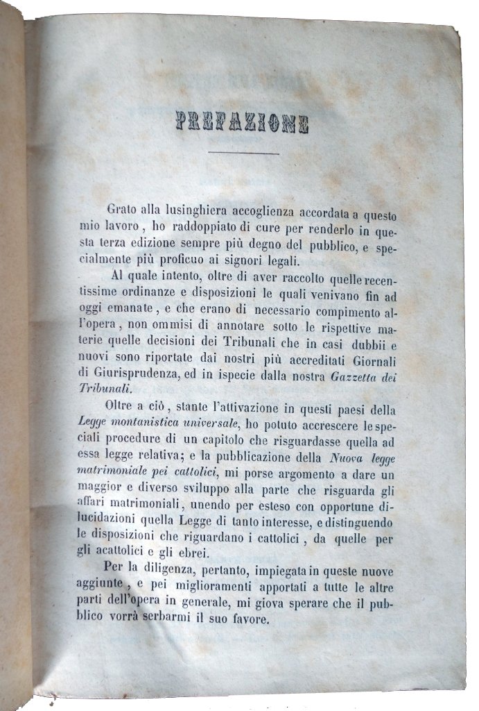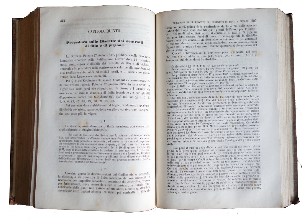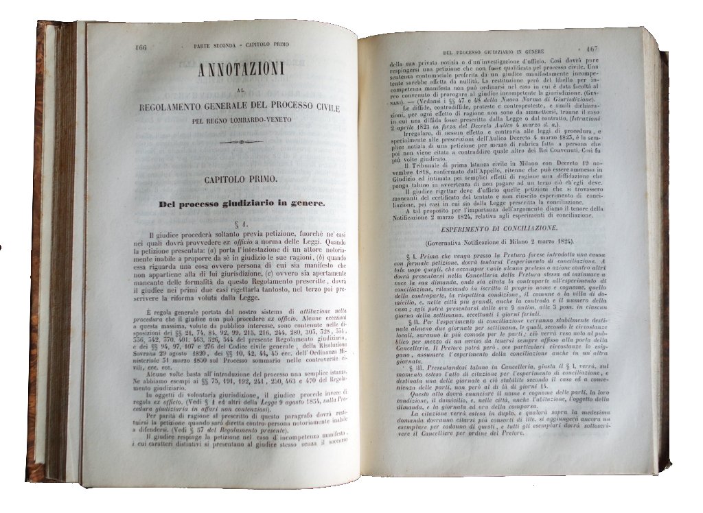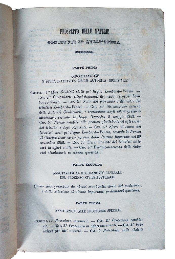 SONZOGNO G. CESARE. Manuale del processo civile austriaco o sia raccolta ordinata delle leggi relative alla civile procedura giusta il nuovo piano di organizzazione giudiziaria. Con spiegazioni e commenti. Terza edizione notabilmente accresciuta e migliorata. Milano, presso Lorenzo Sonzogno, 1858.