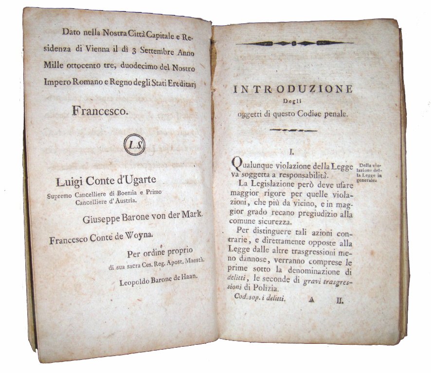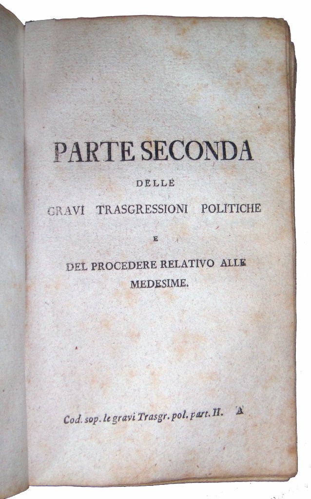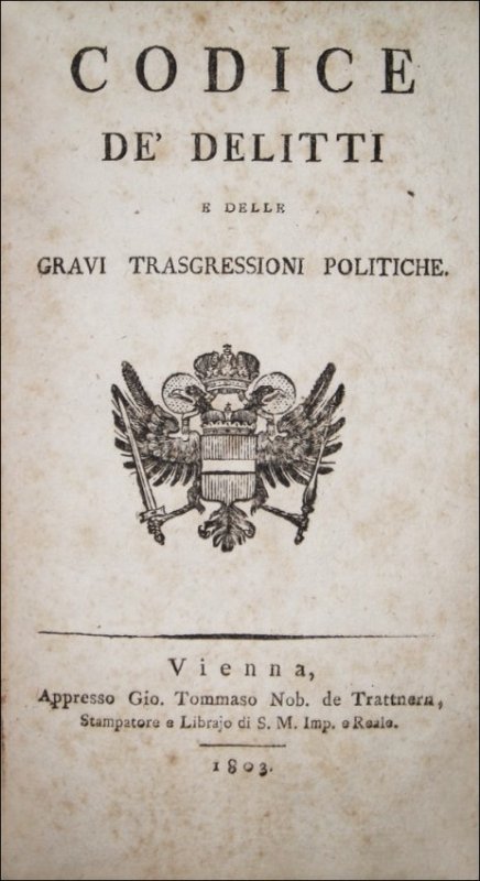 Codice de’ delitti e delle gravi trasgressioni politiche. Vienna: Appresso Gio. Tommaso de Trattnern, 1803.