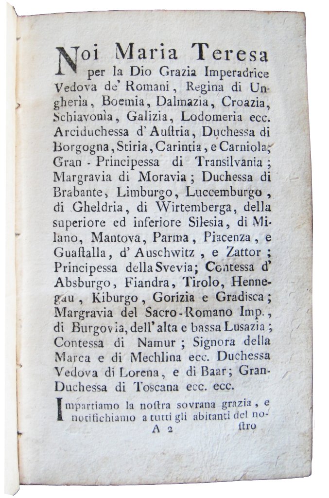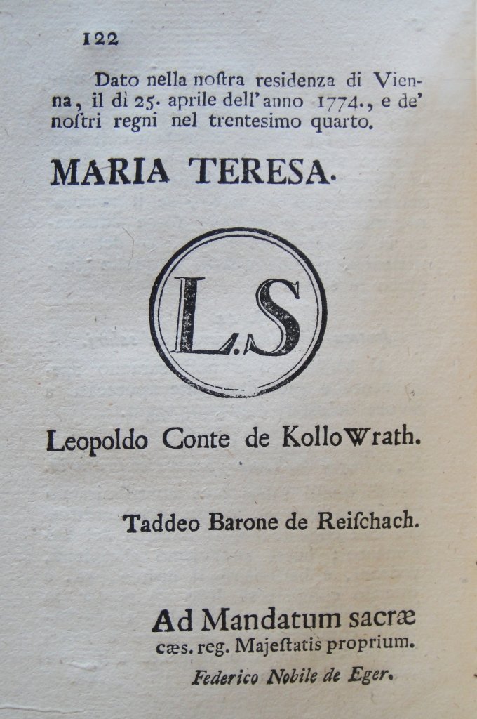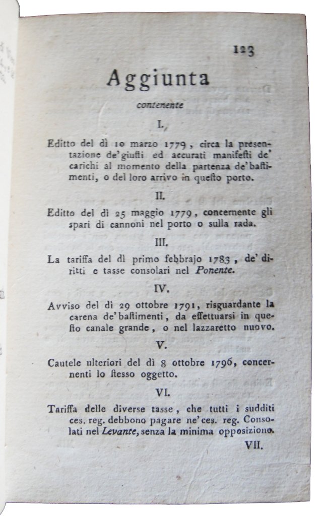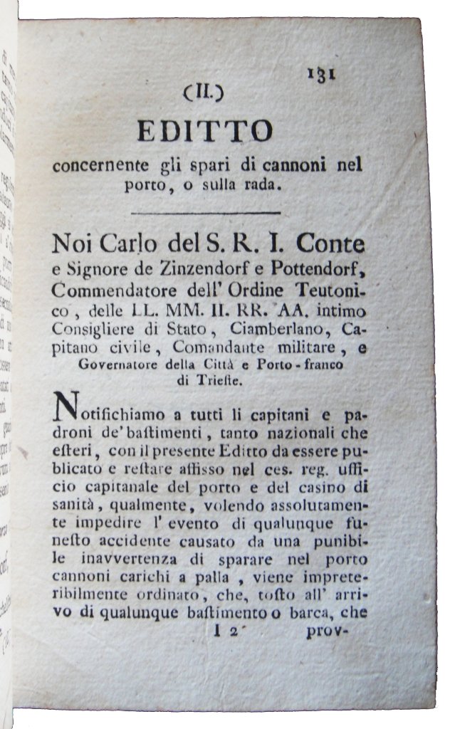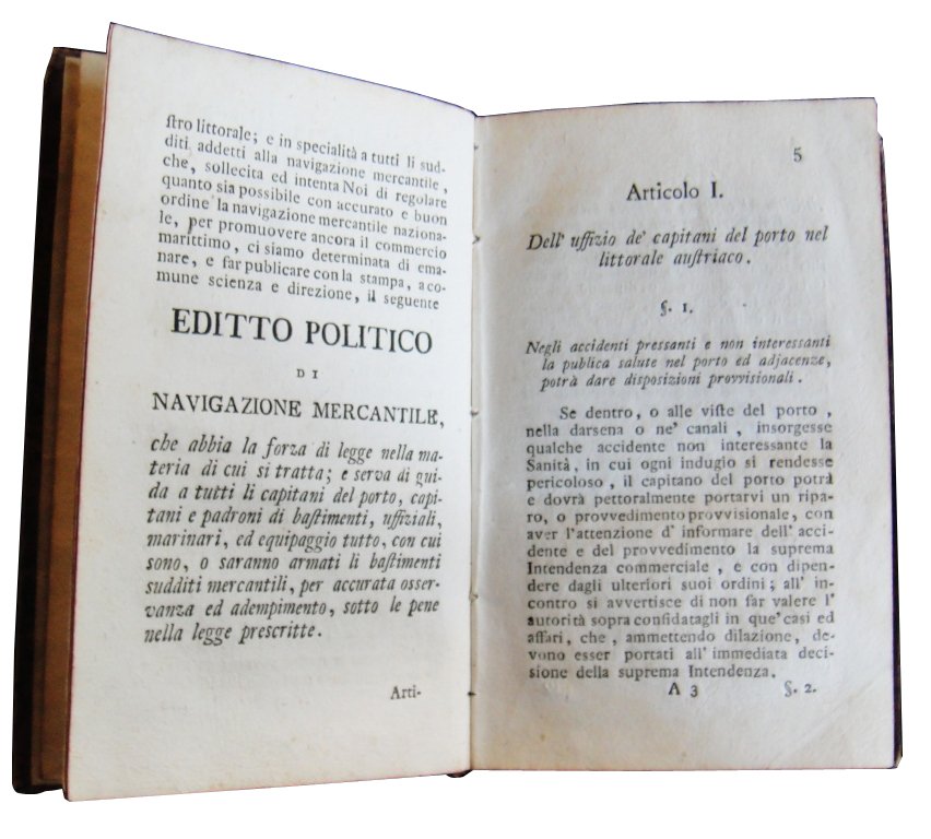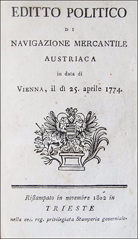 Editto politico di navigazione mercantile Austriaca in data di Vienna, il dì 25 Aprile 1774. Ristampato in Trieste: Stamperia Governiale, novembre 1802.