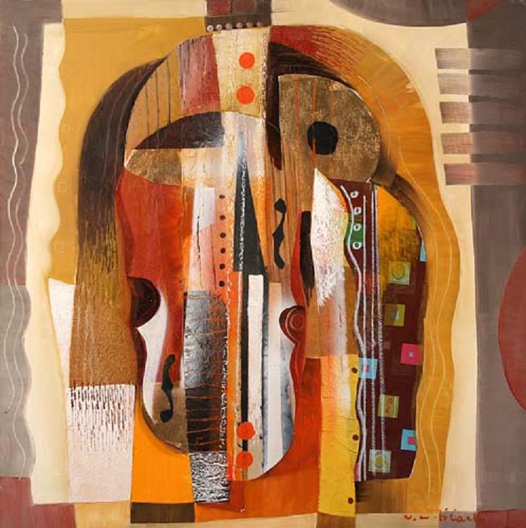 VITTORIOMARIA DI CARLO S. Marco in Lamis (Fg) 1939 Strumento a corde olio e collage su tela cm. 80x80, firma in basso a destra e al retro, dichiarazione d'autenticità e archivio numero 200/80 dell'artista su foto.