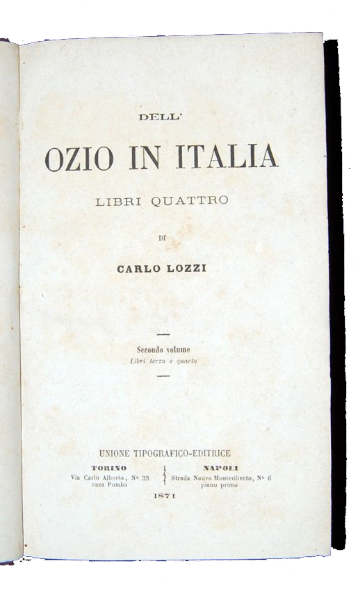 [2.]: Lozzi, Carlo. Dell'ozio in Italia: libri quattro di Carlo Lozzi. Primo [Secondo-] volume. Torino; Napoli: Unione Tipografico-Editrice, 1870-1871
