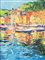 BEPPE GALLO Castagnole delle Lanze 19/07/1942 Portofino, calata e barca blu, 2002 olio su tela cm. 24x18, firma in basso a destra, titolo, firma e anno al retro, dichiarazione d'autenticità dell'artista e archivio della Meeting Art (VC) su foto.