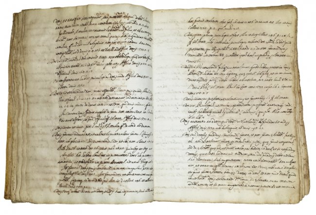 A thick volume in-folio, contemporary vellum (traces of use) with calligraphic title at spine.