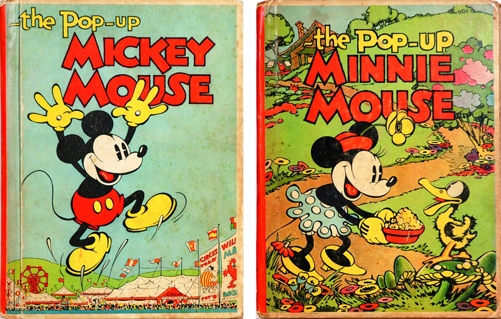 Story and illustrations by the staff of the Walt Disney Studios. Blue Ribbon Books, New York 1933. Cm 17x22,5, pp. 30; copertina cartonata. I volumi alternano tre coppie di pagine pop-up a pagine di testo illustrate in b/n. Lotto composto da: Mickey Mouse in eccellente stato; Minnie Mouse in ottimo stato, una firma di appartenenza su una sguardia.