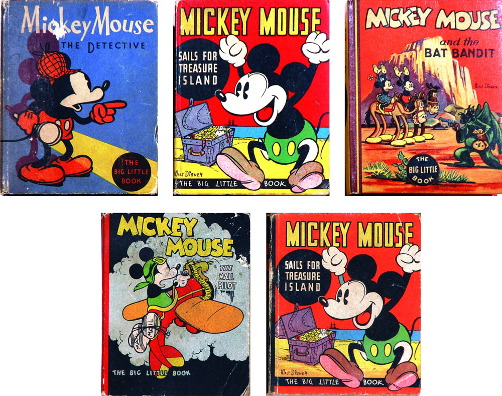 1933. Brossura editoriale. In buono stato, alcuni strappetti alla legatura. Mickey Mouse Sails for Treasure Island 1933. In ottimo stato. Mickey Mouse Sails for Treasure Island 1935. L’edizione promozionale del volume del 1933, in brossura editoriale. Lieve scollatura al dorso e leggere tracce di usura alla legatura, ma buono stato. Mickey Mouse The Detective 1934. In buono stato. Mickey Mouse And The Bat Bandit 1935. In eccellente stato, una firma di appartenenza a una sguardia.