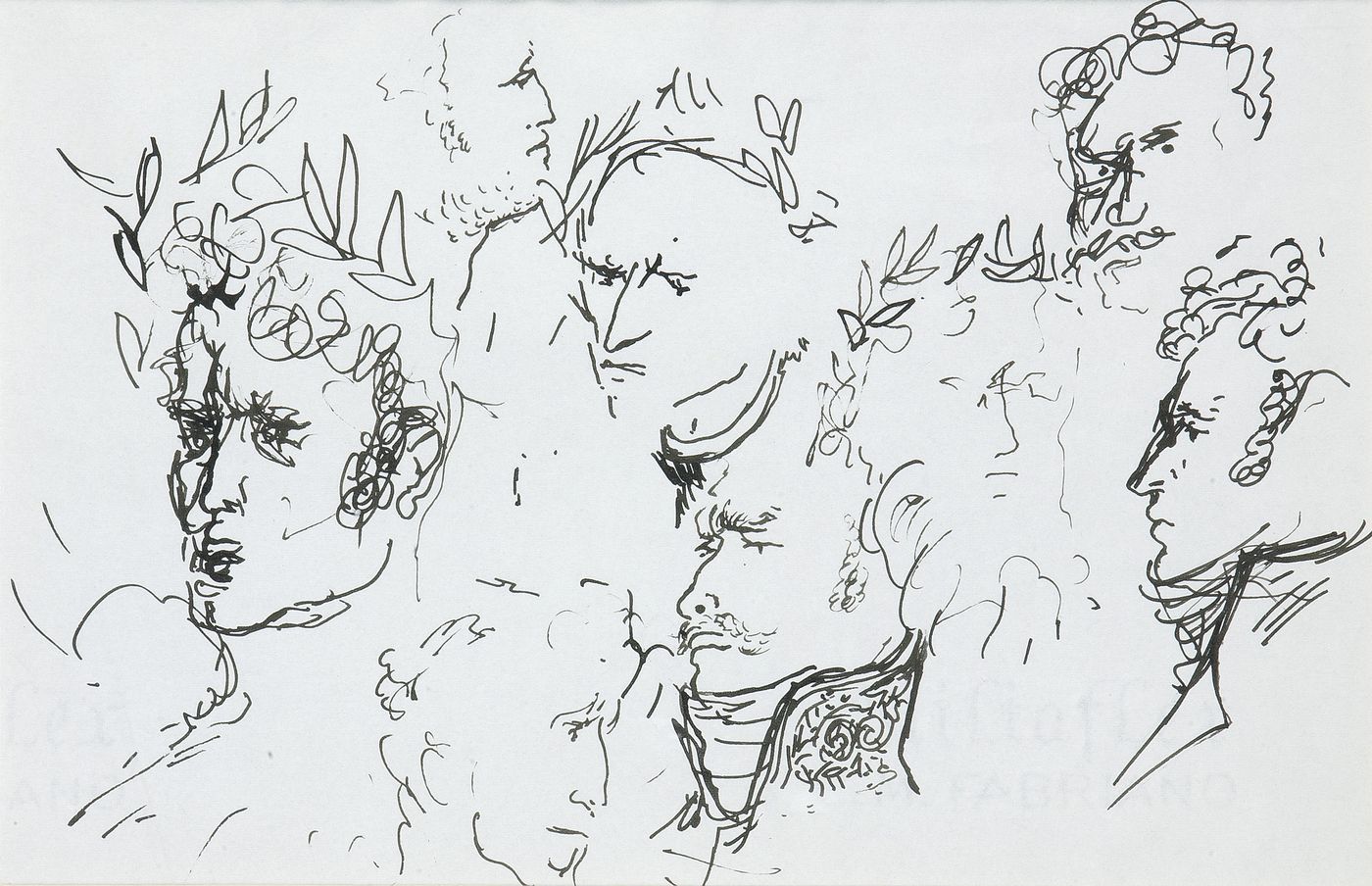 GUTTUSO RENATO (Bagheria (PA) 1911 - 1987 Roma) - "Personaggi" 1958, 21,5x33,7 china su carta. Autentica di Fabio Carapezza Guttuso su fotografia. Opera archiviata presso l'Archivio delle Opere di Renato Guttuso con il n. 1815410903. L'opera appartiene alla serie realizzata per l'illustrazione delle poesie di Carlo Porta, commissionata dall'editore Ricciardi
