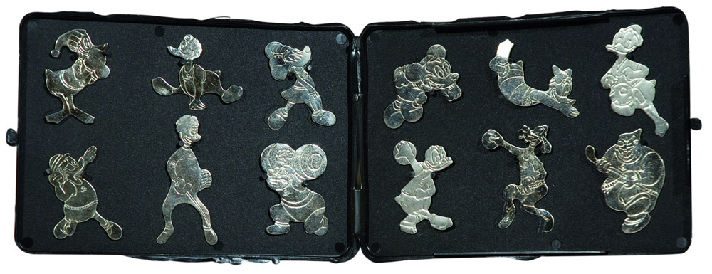 completo delle 12 figurine sagomate in stagno dei superatrleti, in eccellente stato e prive di bruniture. Di assoluta rarità in quanto alcune di queste figurine erano reperibili solamente nei prodotti Findus e non furono mai allegate agli albi.
