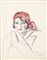 ANSELMO BUCCI Fossombrone (Ps) 29/11/1887 - Monza (Mi) 15/11/1965 Figura con foulard, 1918 matita e acquerello su carta cm. 65,3x50, firma e anno in basso a destra.