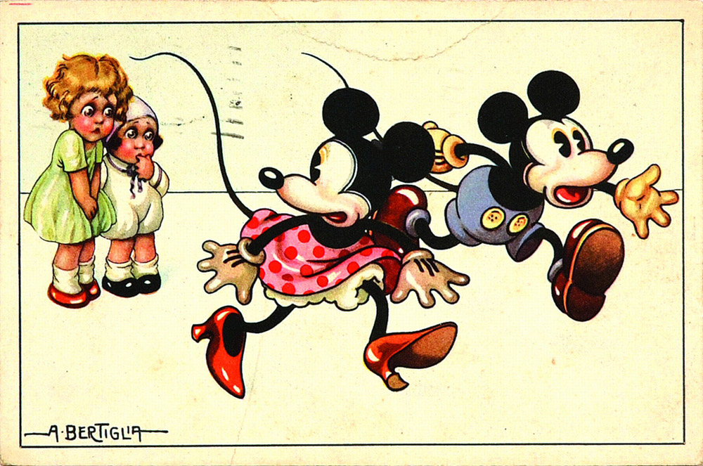 Viaggiata primi anni ’30. Cm 14,3x9. Questa immagine è stata utilizzata da Antonio Faeti per la copertina dello storico saggio “Guardare le figure”. Buona conservazione, una piccola piega al margine superiore.