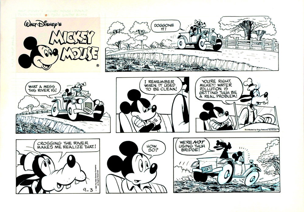 Tavola domenicale del 3 settembre 1989 su testi di Del Connell, inchiostrata da Bill Langley. Matita blu e china su cartoncino cm 45x32. Arambula è noto soprattutto per il suo lavoro nel campo dell’animazione. Dopo essere stato layout artist per Hanna- Barbera ha realizzato agli inizi degli anni ’70 le sue prime storie a fumetti per la Disney. Nel 1975 ha sostituito Gottfredson nelle strisce giornaliere di Mickey Mouse. Tra le sue collaborazioni storyboards per la Marvel e la Warner Bros. Eccellente stato.