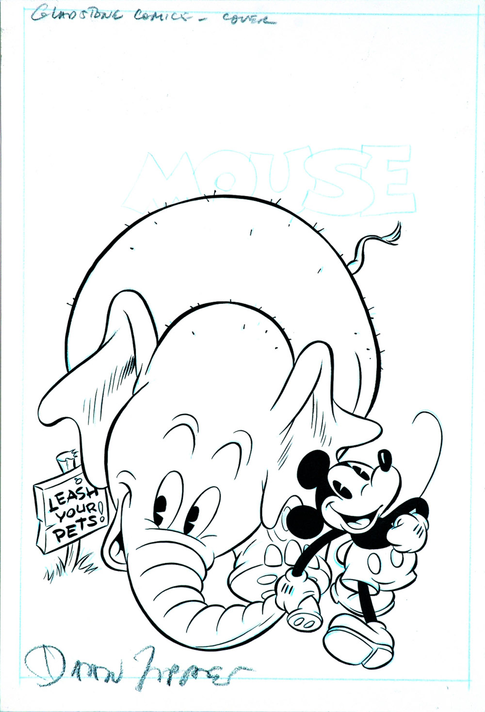 Original cover art for Mickey Mouse 231, Oct. 1987. Blue pencil and ink on thin cardboard. Signed, excellent conditions.