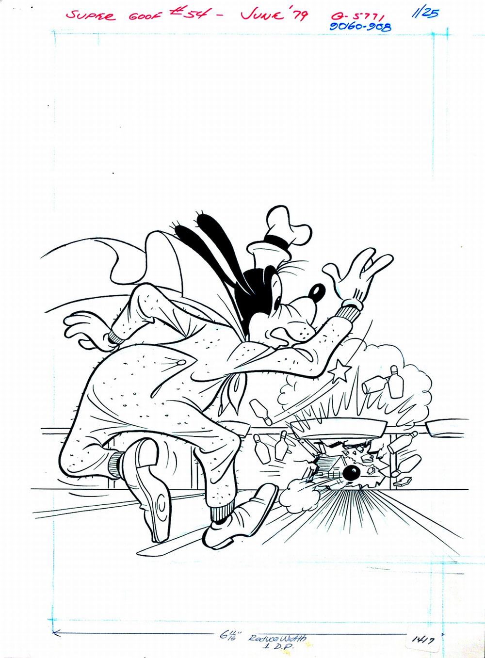 Originale di copertina per il n°54 dell’albo Gold Key Comics, agosto 1979. Matita blu e china su cartoncino cm 31x43,5. Al retro timbro di appartenenza alla Western Publishing Co. Illustratore umoristico per la Western Publishing, inizia a inchiostrare storie Disney per Tony Strobl e Kay Wright e Gottfredson. In eccellente stato.