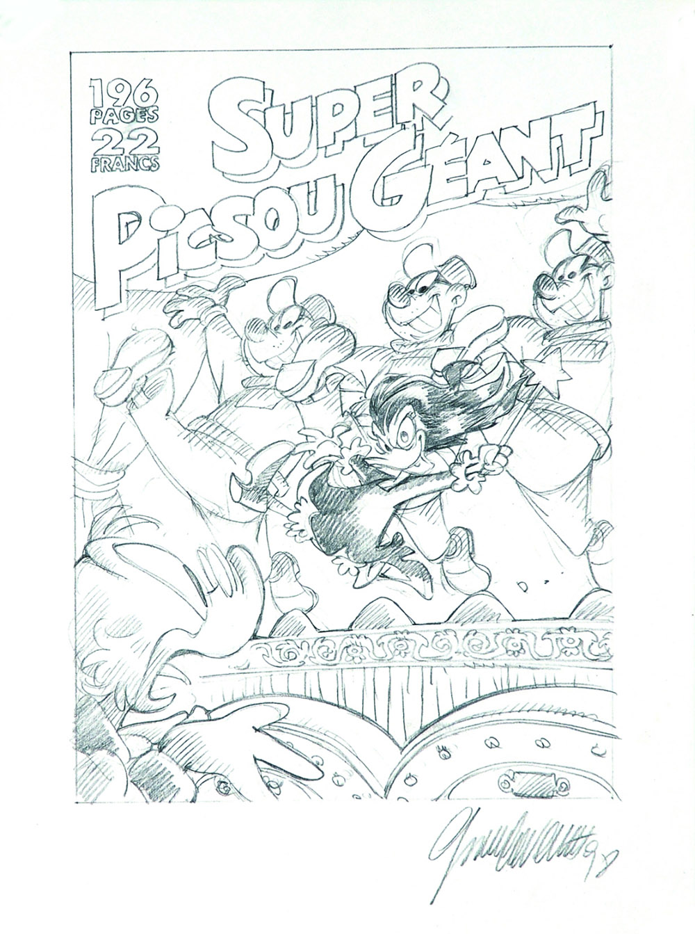 Cover art sketch for Super Picsou Geant #83, March 1998. Pencil on thin cardboard. Signed and dated on right bottom, excellent conditions.