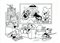 Elaborata illustrazione matita e china su cartoncino cm35x25, che racchiude in un piccolo spazio molti elementi e personaggi di Paperopoli. Eccellente stato, firmata.