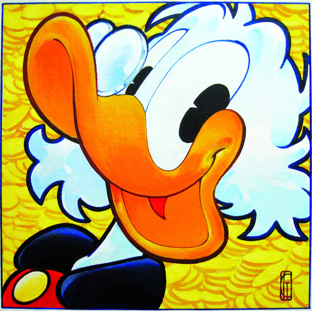 Illustrazione acrilico su cartone telato cm 30x30. Firmato. Cavazzano è attualmente l’unico artista italiano autorizzato a produrre opere pittoriche con i personaggi Disney. Suoi alcuni celebri ritratti in chiave pop di Paperino, Pippo, Clarabella e Zio Paperone. Eccellente stato, in cornice.
