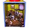 Scultura base cm 50 per altezza cm 55, più puntale per un’altezza complessiva di circa 90 centimetri. Per realizzare quest’opera policroma sono stati utilizzati i seguenti materiali: struttura in compensato nobile con profilature in alluminio verniciato spray; rivetti in ottone; cupola in resina; interno in materiale espanso, riempita di lenticchie (le monete del deposito) e materiali vari: cartoncino, Poli-plat, Plasticard. Verniciatura ad aerografo e dettagli a pennello. Miniatura dipinta ad olio , il resto ad acrilico; schermo frontale asportabile in acetato. Omaggio dello scultore specializzato in miniature militari al luogo/ossessione di Zio Paperone.