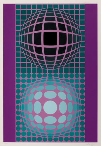 VICTOR VASARELY Pecs 1908 - Parigi 15/03/1997 Composizione optical serigrafia su carta cm. 108x75, esemplare 100/295, firma in basso a destra.