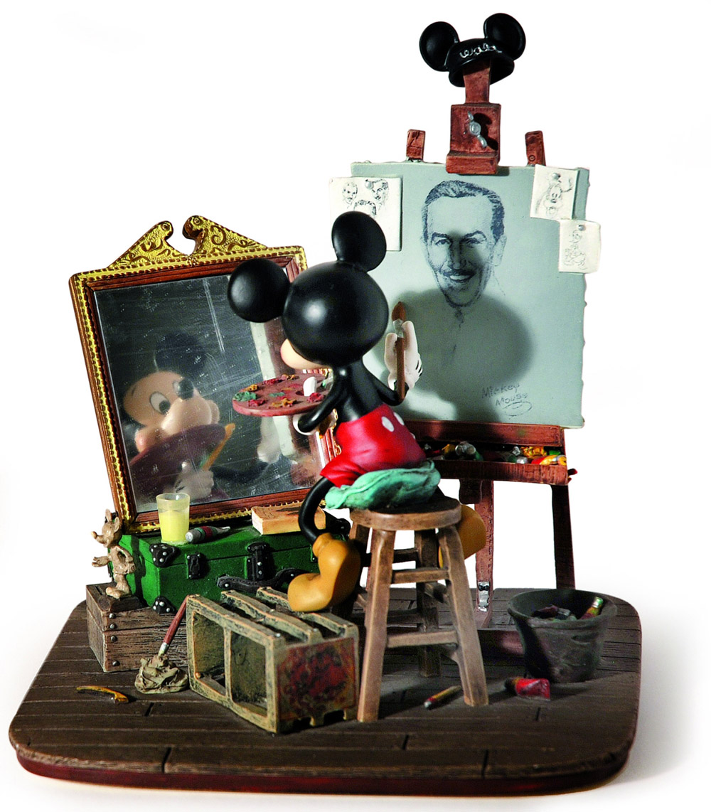 Poliresyn figurine inspired by Charles Boyer poster from the Eighties, an homage to Norman Rockwell's famous self-portrait. Exclusive of Disney themed parks around the world. Perfect conditions.