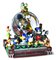 Globo musicale con luce, la scena in stile anni ’20 include i personaggi Disney su un set cinematografico la cui star è Minnie, al centro del globo trasparente. “There’s no business like the show business” è la musica di accompagnamento. Perfetto.