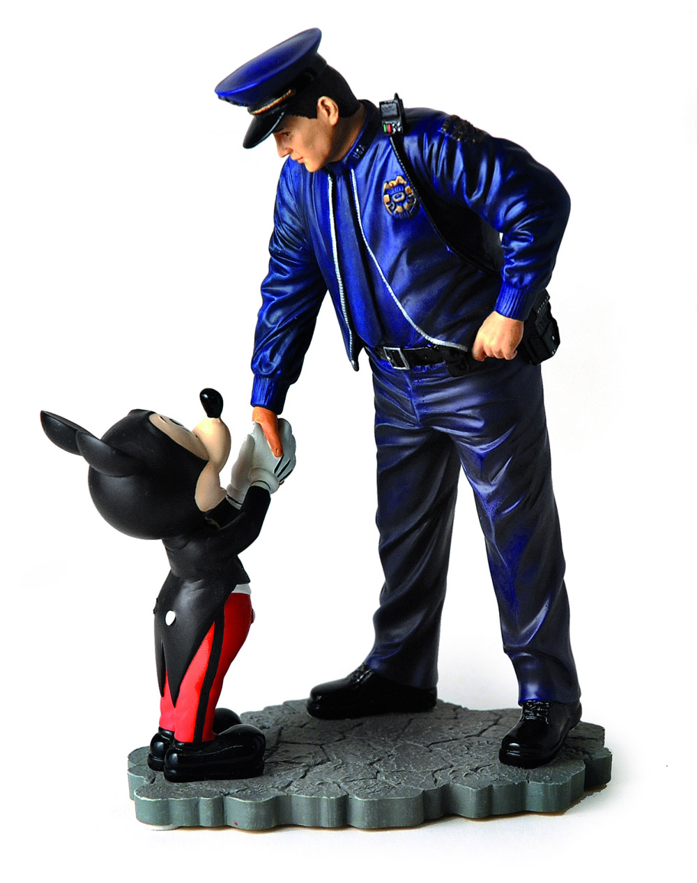 Mickey shakes hands with a policeman in this commemorative figurine molded following Charles Boyer's drawing.