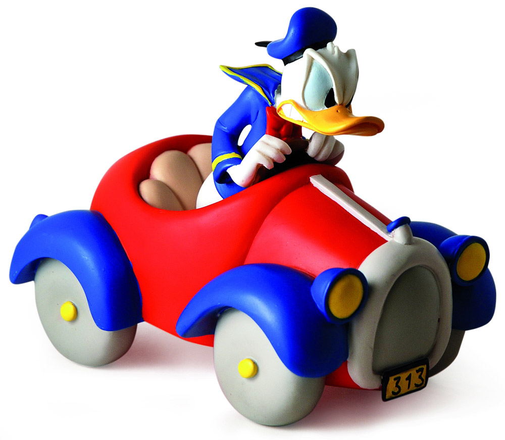 Poliresyn figurine of Donald angrily driving his 313. Excellent conditions.