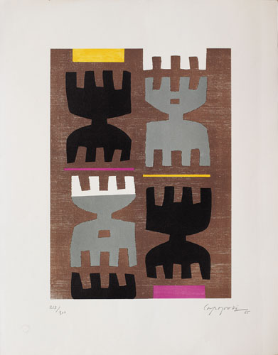 GIUSEPPE CAPOGROSSI Roma 07/03/1900 - Roma 09/10/1972 Senza titolo, 1965 litografia su carta cm. 72,3x56,4; esemplare 213/300, firma e anno in basso a destra, tiratura in basso a sinistra, pubblicata sul catalogo delle Edizioni Von Hase - Schmundt al numero 49.