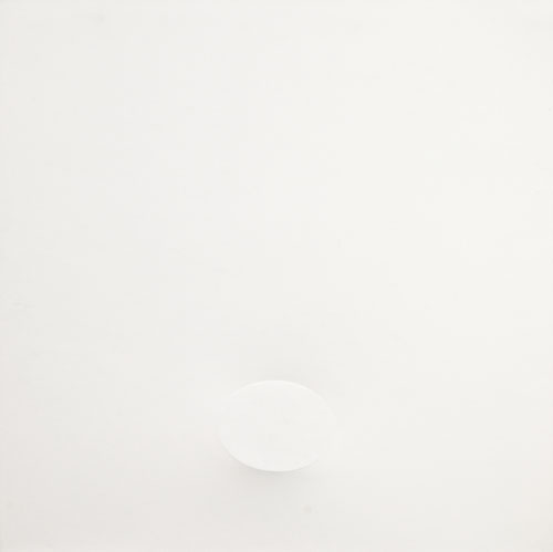 TURI SIMETI Alcamo 05/08/1929 Un ovale bianco, 1980 acrilico su tela estroflessa cm. 100x100, firma e anno al retro, opera registrata presso l'archivio Turi Simeti come da dichiarazione su foto, senza cornice.