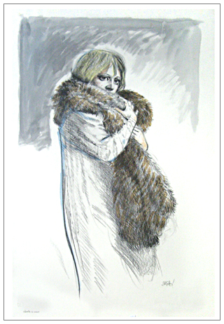 ALBERTO SUGHI Cesena 1928 – Bologna 2012 Senza titolo Litografia colorata a mano es.unico. Firma in b. a d., timbro a secco “GL” e tecnica in b. a s. (95 x 65 foglio – 82 x 52 ca. lito.) B.A.: 150