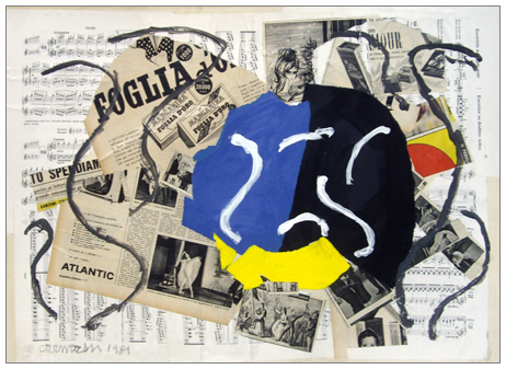 ARTURO CARMASSI Lucca 1925 - Torre di Fucecchio 2015 Senza titolo 1981 Olio, t.m. e collage su cartoncino 49,5 x 70. Firma e data in b. a s. Autentica dell’autore su foto. B.A.: 250