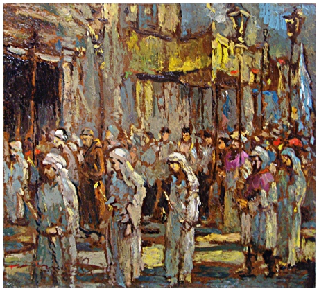 OVIDIO GRAGNOLI Grosseto 1893 – Firenze 1953 Senza titolo (Processione) Olio su faesite 24,5 x 26. Firma in b. a s. B.A.: 350