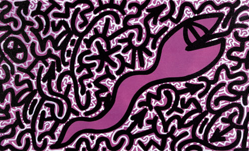 LITTLE ANGEL (LA2) New York 1967 Snake Purple 2006, smalto e spray su tela cm. 46x76, firma al retro, dichiarazione d'autenticità dell'artista su certificato d'autenticità della Follin Gallery New York allegato.