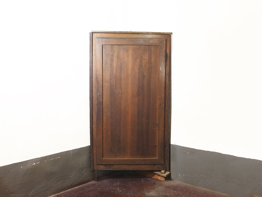 Lotto 10 | Angoliera rustica in legno tenero fronte dritto a uno sportello, difetti h cm...