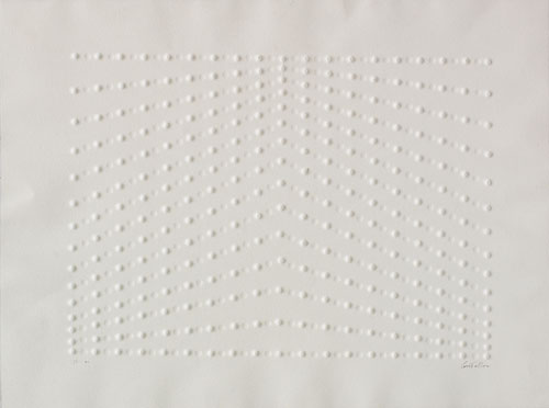 ENRICO CASTELLANI Castelmassa (Ro) 04/08/1930 Superficie bianca, 1969 cartoncino lavorato con impressione a secco cm. 45x60, esemplare P.A., firma in basso a destra, realizzato per la cartella "Grafica 69" con opere di Baj, Bruni, Castellani, Ceroli, Guerreschi, Morlotti, Pozzati, Saroni, Stefanoni e Turcato, Stampatore Di Tommaso (Roma), Edizioni Il Nuovo Torcoliere (Roma), pubblicato su "Enrico Castellani, opera grafica 1960 - 1995", repertorio numero 11.