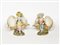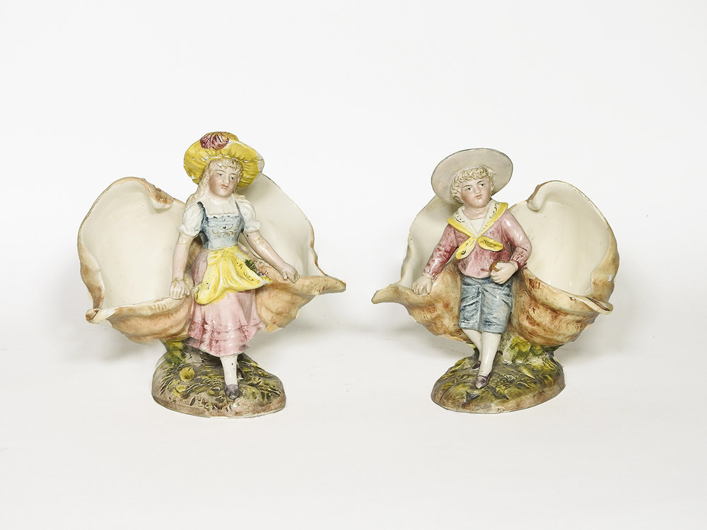 Coppia di fiorire in terraglia realizzate come due contadinelli con ceste,...