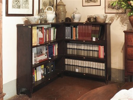 Libreria bassa angolare in legno tenero tre scaffali a giorno, piedi a...