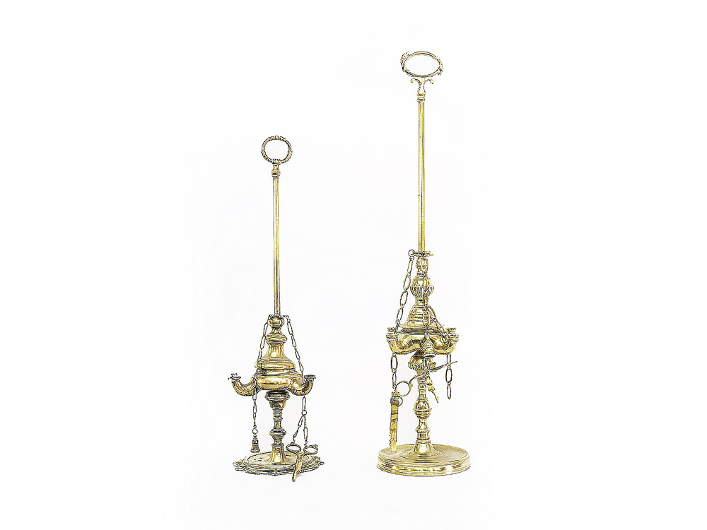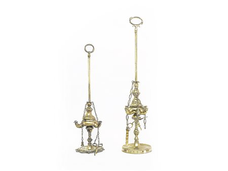 Due antiche lucerne fiorentine in ottone dimensioni diverse