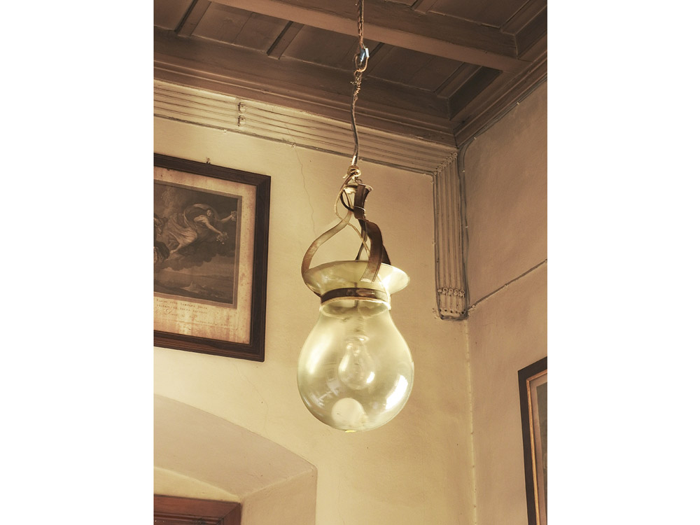 Lanterna in ferro battuto con bobeche in vetro soffiato h cm 47